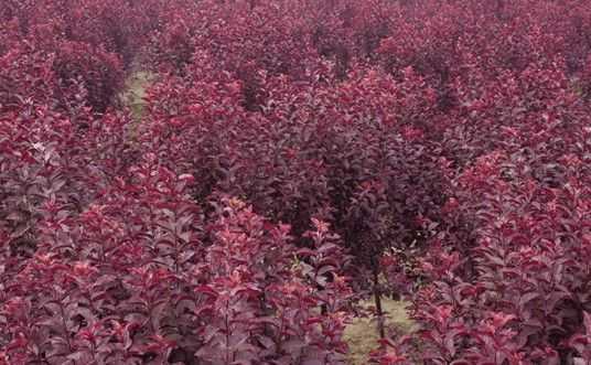 形态特征:落叶小乔木,在江苏大丰红叶李基地颜色通常红些,为气候不同的原因。搜基地轻松知道更多,2公分红叶李,3公分红叶李,4公分红叶李,5公分红叶李,最大的20公分.干皮紫灰色,小枝淡红褐色,均光滑无毛。单叶互生,叶卵圆形或长圆状披针形,长4.5-6厘米,宽2-4厘米,先端短尖,基部楔形,缘具尖细锯齿,羽状脉5-8对,两面无毛或背面脉腋有毛,色暗绿或紫红,叶柄光滑多无腺体。花单生或2朵簇生,白色,雄蕊约25枚,略短于花瓣,花部无毛,核果扁球形,径1-3厘米,腹缝线上微见沟纹,无梗洼,熟时黄、红或紫色,光亮或微被白粉,花叶同放,花期3-4月,果常早落。